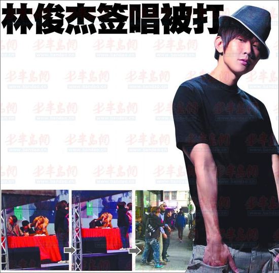 林俊杰(JJ)1日下午在台北西门町电影街举办签唱会,在活动进行中,有一名假装歌迷的壮硕男子跑上台,揍了他一拳,林俊杰当场吓傻,他趴在桌上且一直摸着被打伤的头部,男人逞凶后欲冲下台,...